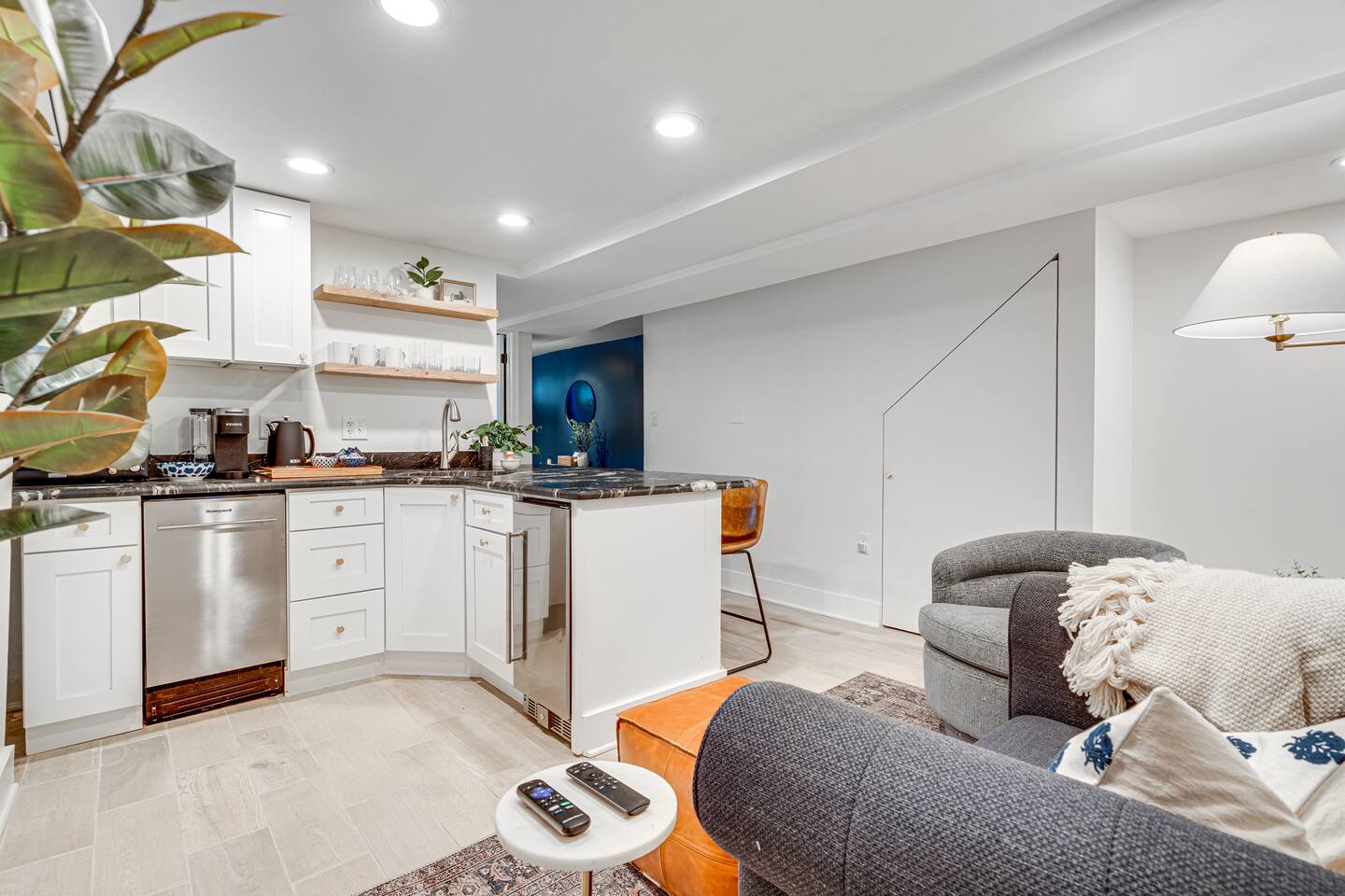 ✨ Welcome to North Capitol Nest, a stunning and cozy 2-bedroom retreat in Capitol Hill, just minutes from the U.S. Capitol, National Mall, and DC’s top attractions. This modern English basement is thoughtfully designed for comfort and style, featuring high-end amenities, a convenient kitchenette, and inviting living spaces. Offering a luxurious stay right in the heart of Washington, DC.