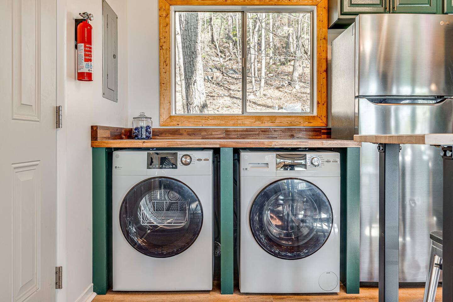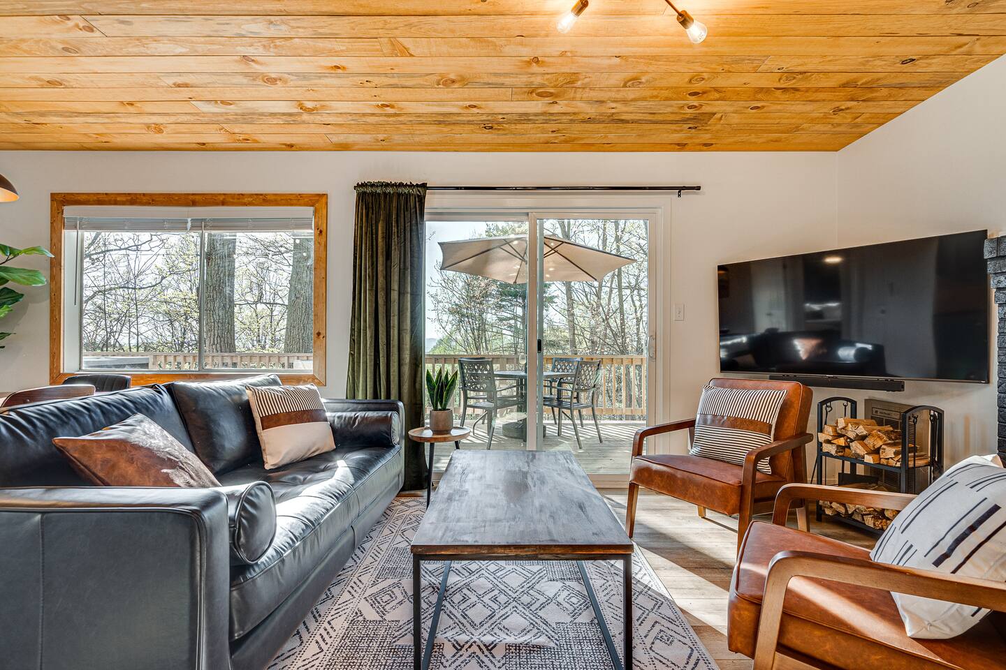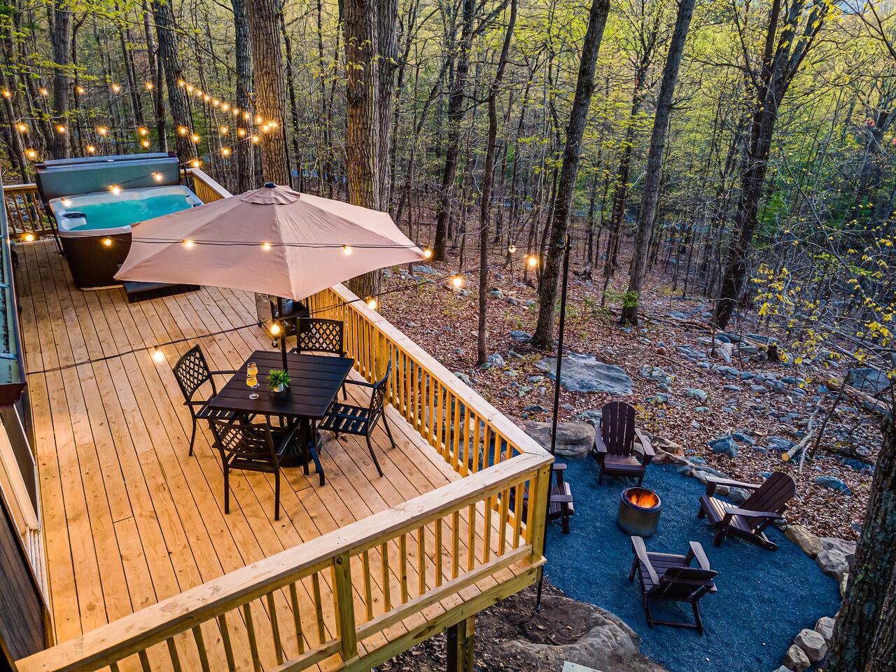 You will have full access to the living areas, dining area, and bedrooms within the cabin and the outside deck with the fire pit area below. Please refrain from venturing past the fire pit area below the cabin as it is fairly rocky, uneven, and felled trees.