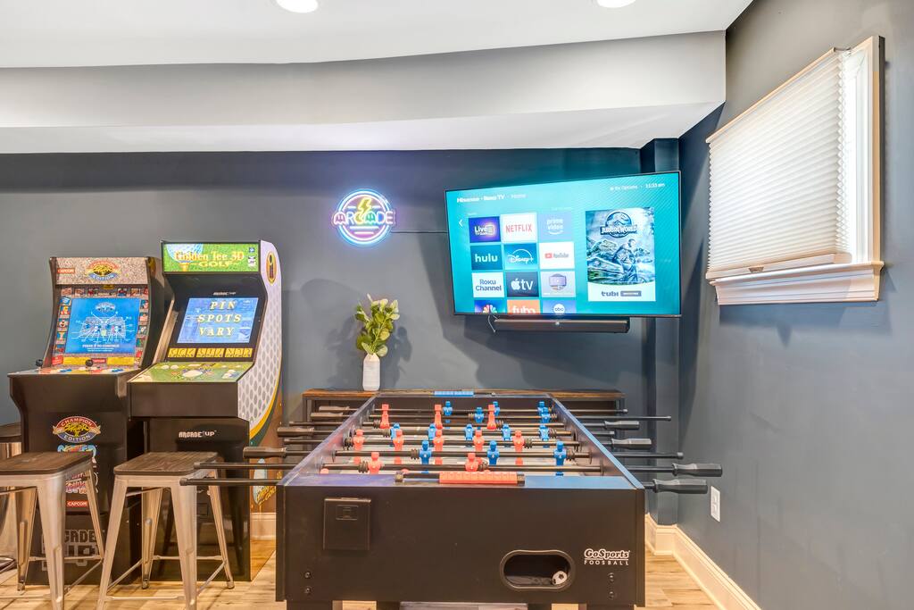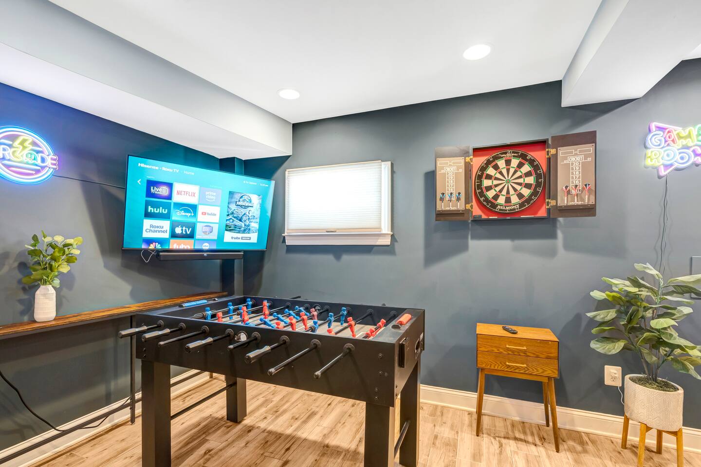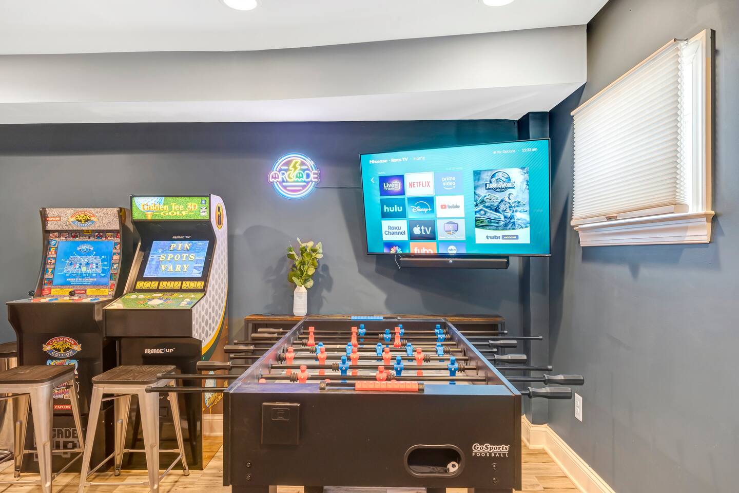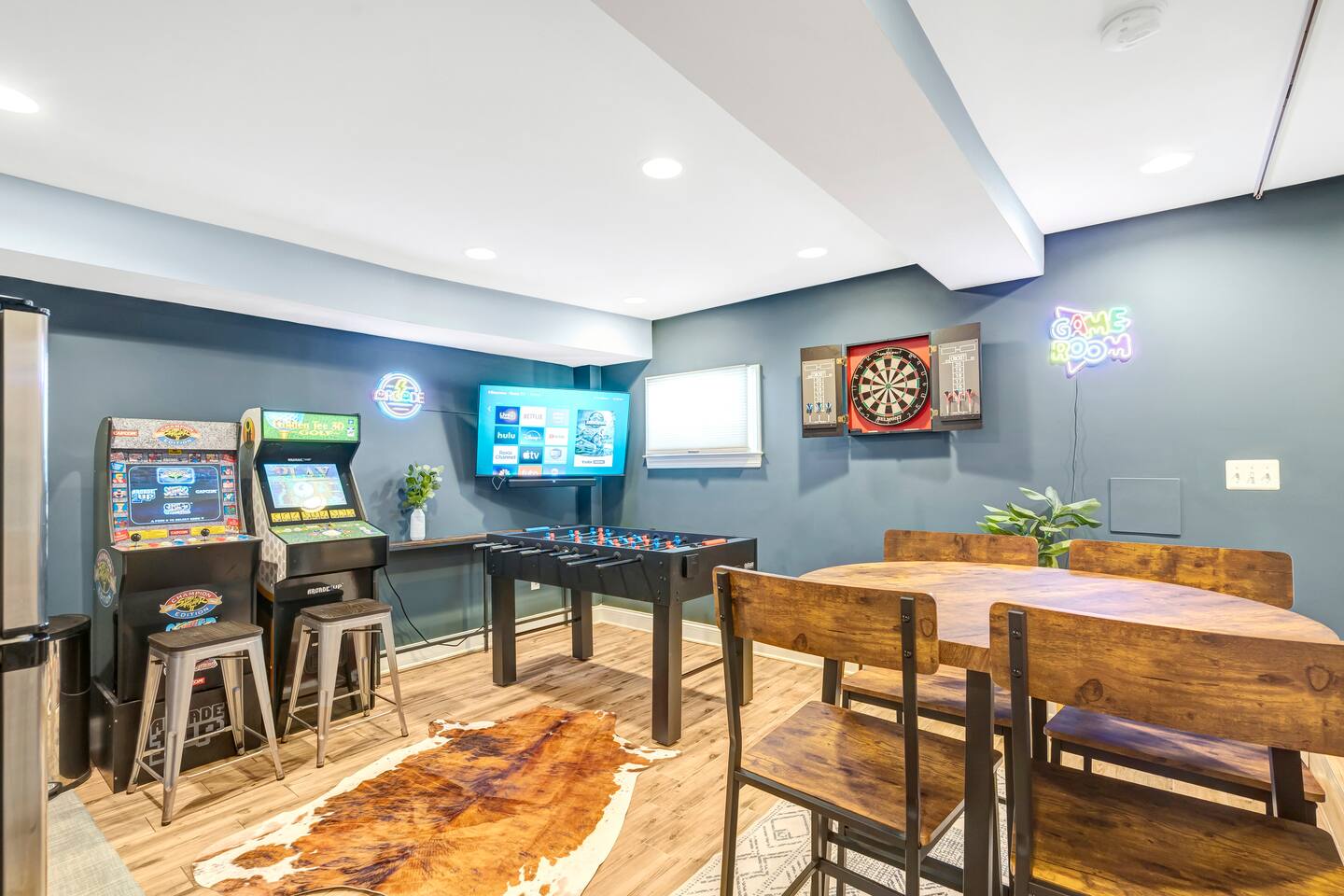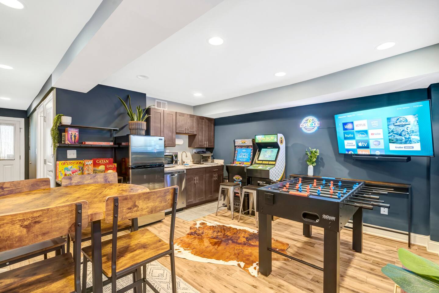 • Game Room: Enjoy your downtime with arcades, board games, darts, and foosball in basement game room allowing your group to spread out — ideal for kids while the adults hang out upstairs.