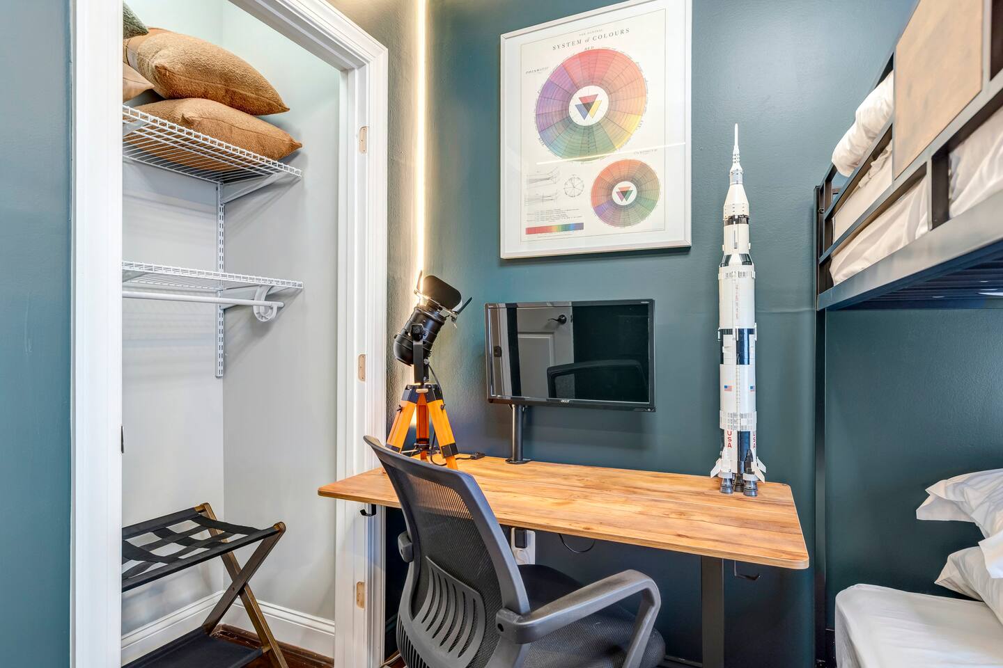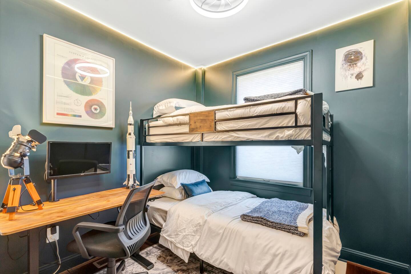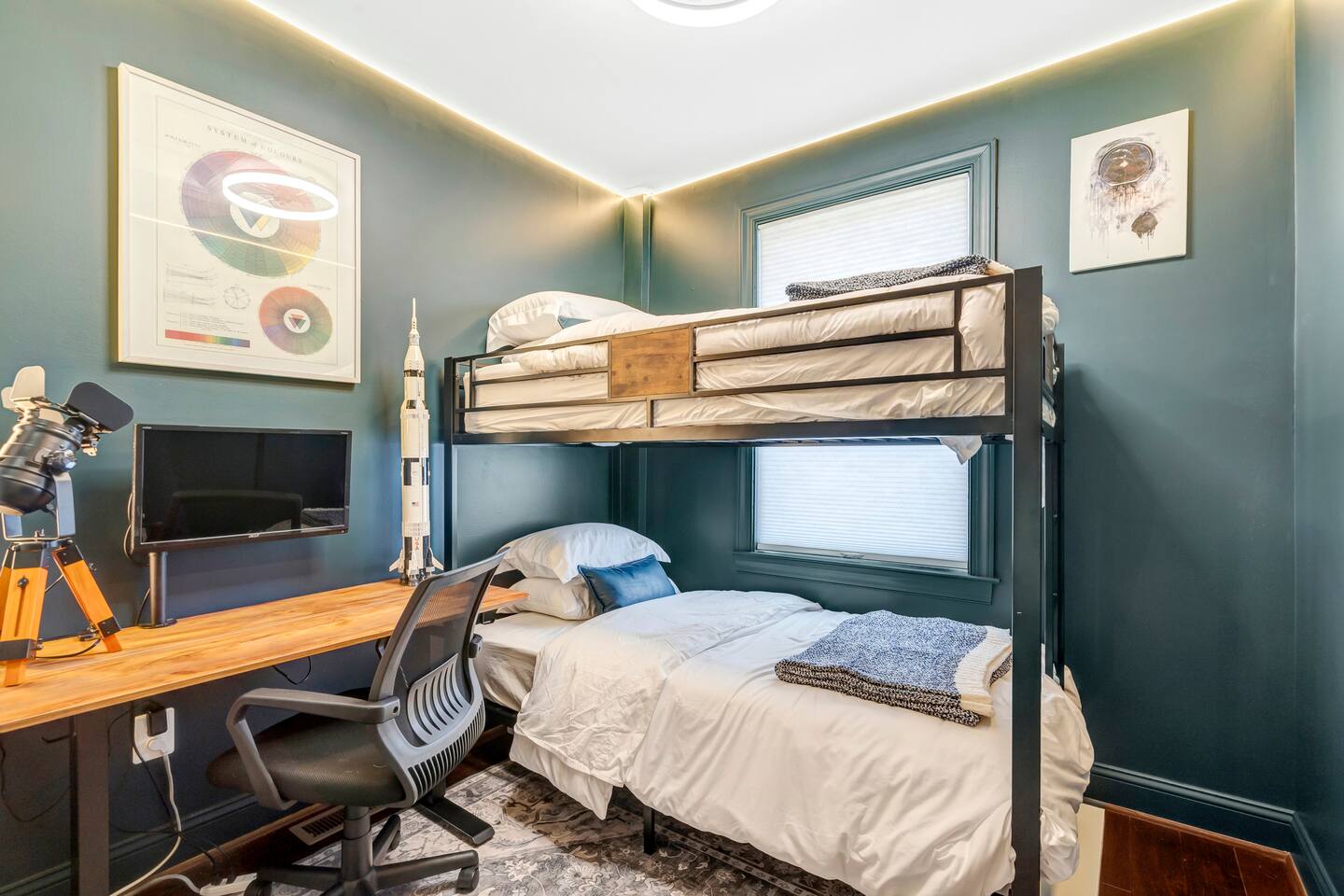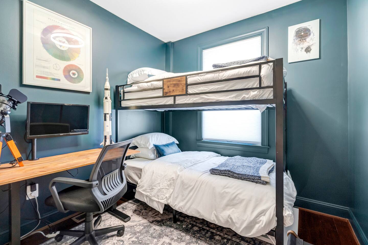 • Third Bedroom (2nd floor, 2 twin bunk bed): A flexible room perfect for kids or friends sharing, with a dedicated workspace for those who also want to catch up on some work on the go.