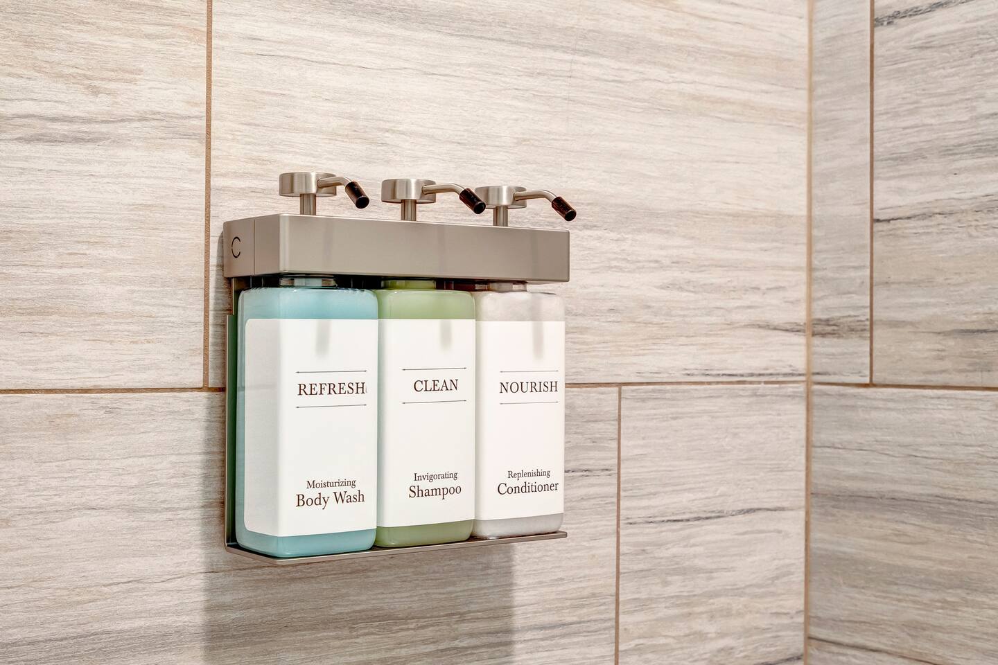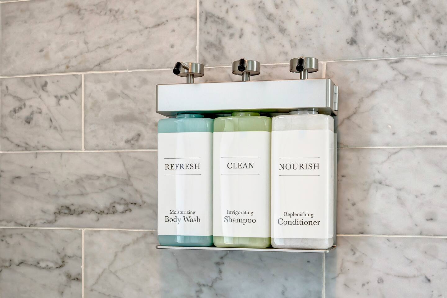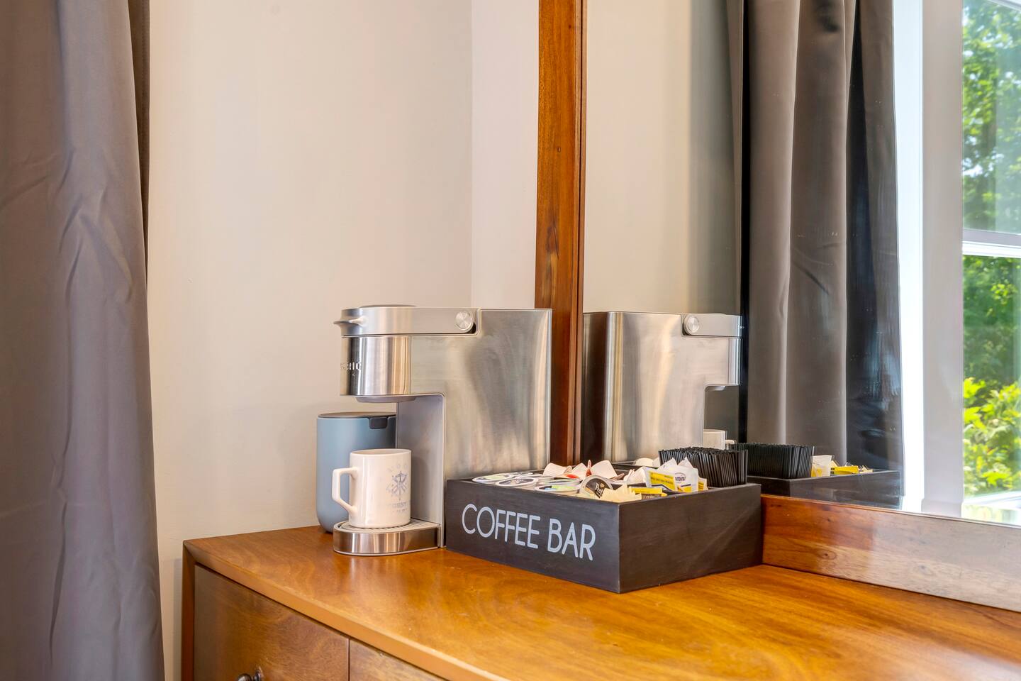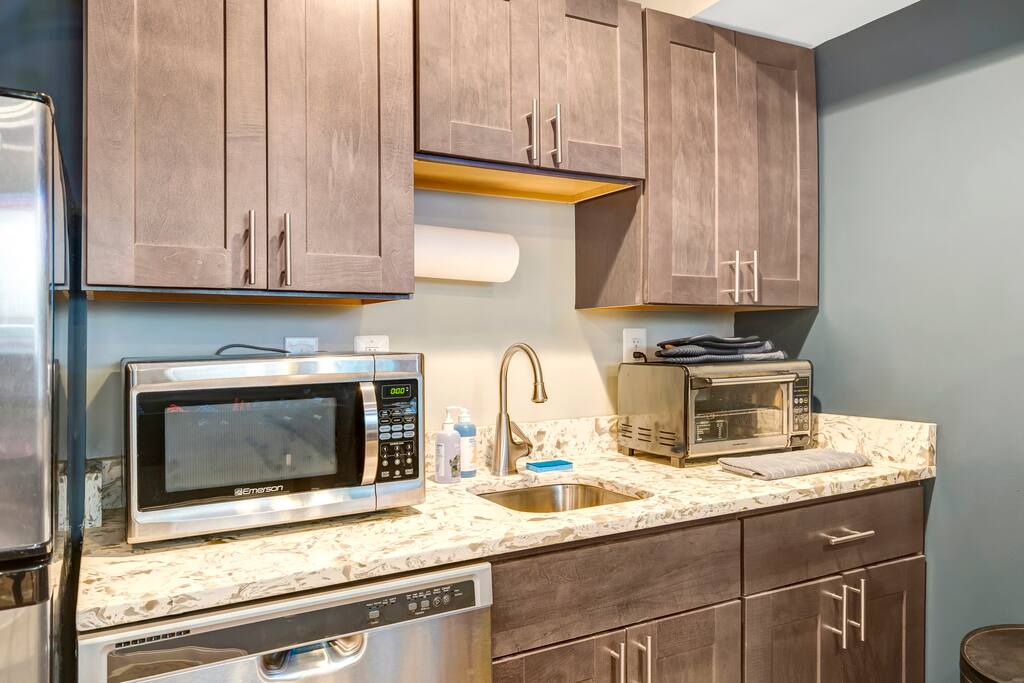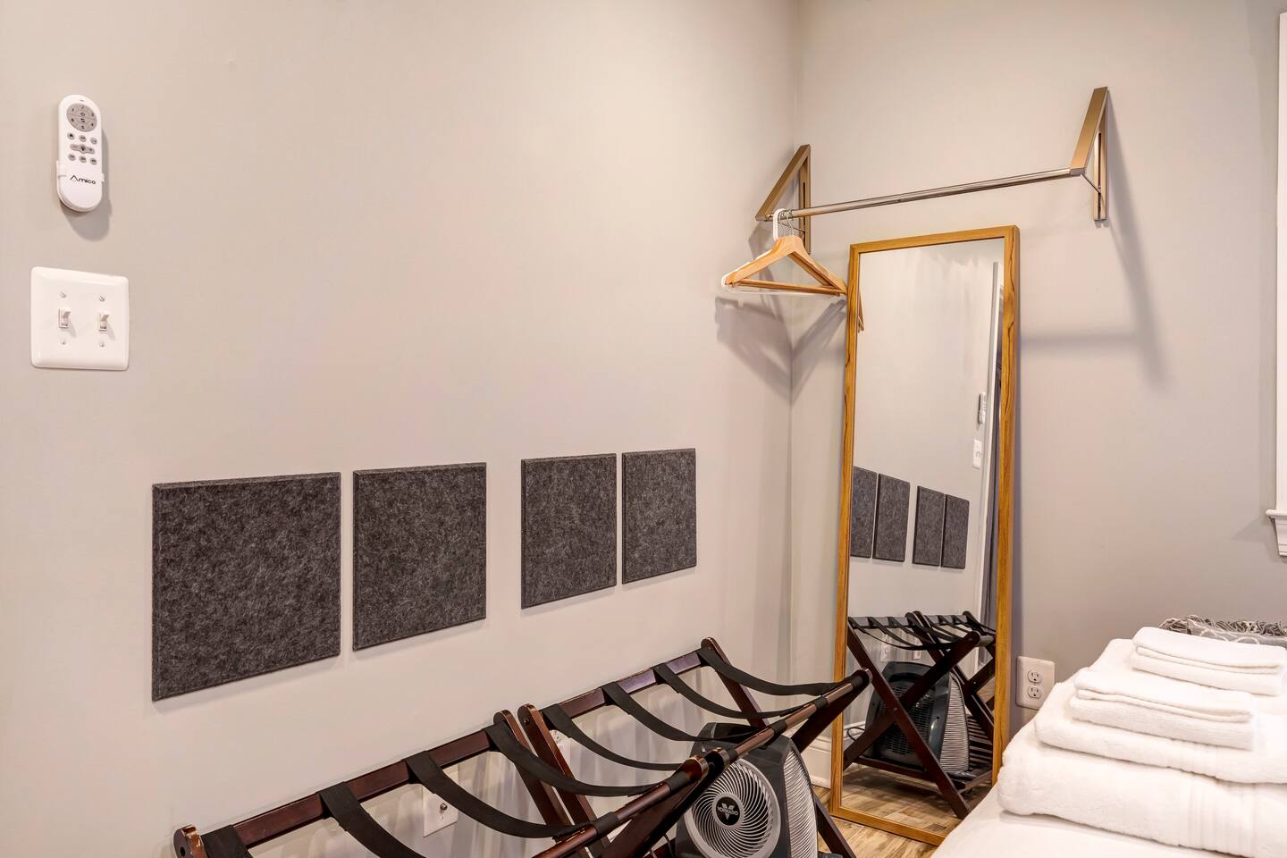 • Primary Suite (2nd floor, King bed): This spacious suite features a Helix king bed, hospitality linens, and a unique mirror wall to help you get ready for the night ahead. Don't forget the coffee bar to get that morning caffeine fix!