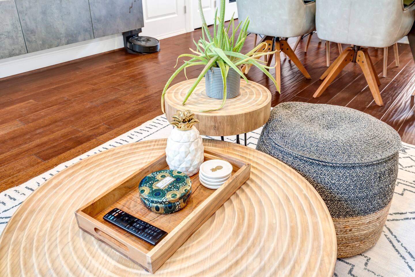 • Main Living Room (Main floor): Sink into the comfortable couch sectional and stream your favorite shows on the 65-inch smart TV. Thoughtfully styled with comfort and togetherness in mind.