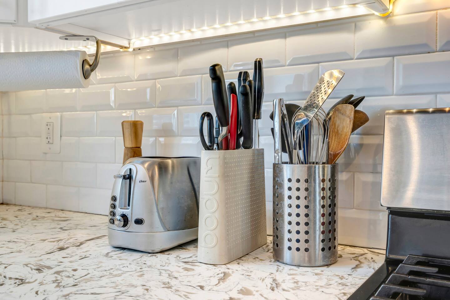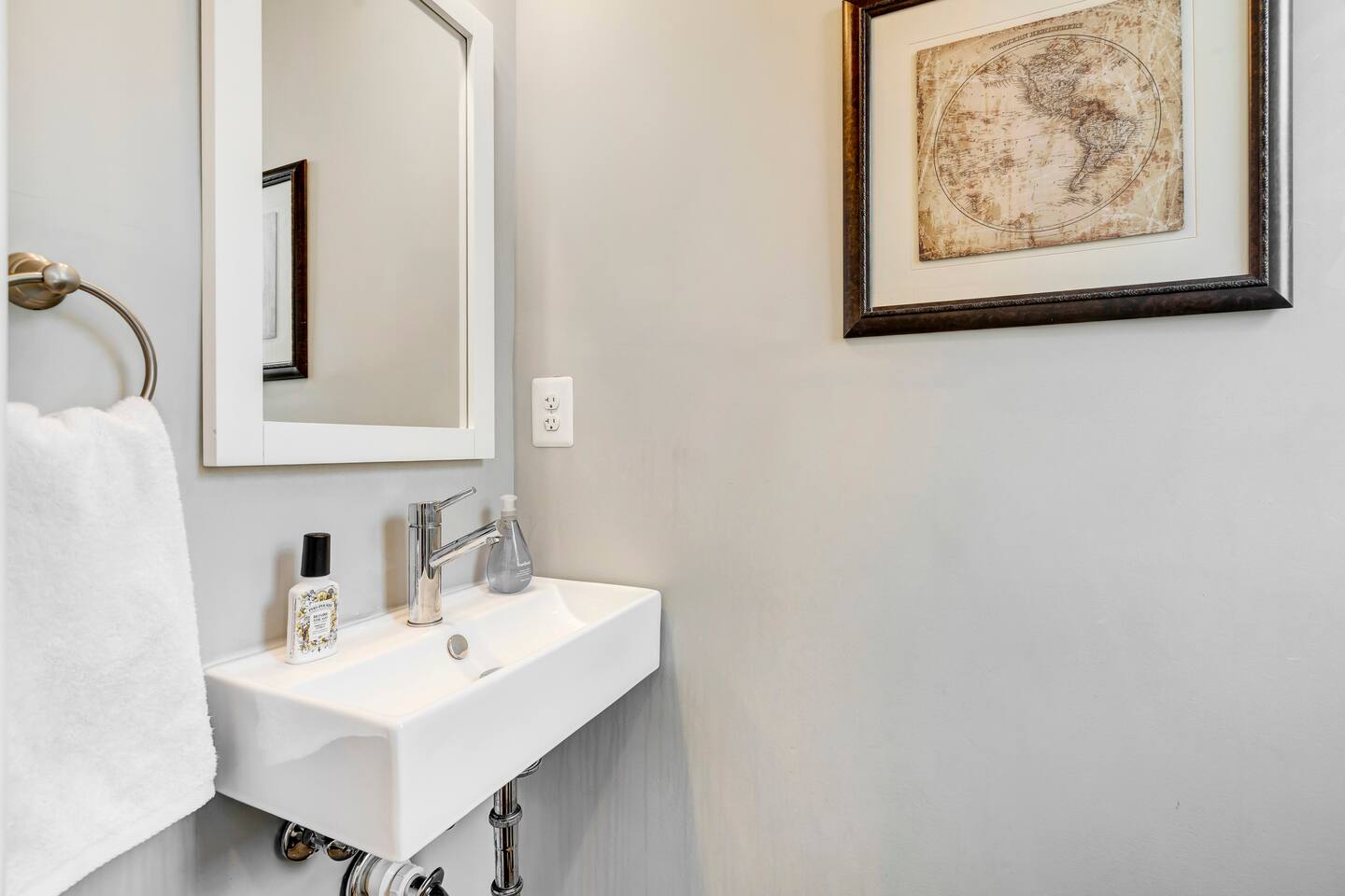 • Bathrooms: This home features three full bathrooms each stocked with fresh towels, shampoo, conditioner, body wash, and a hairdryer. The main floor also has a powder room for convenience.